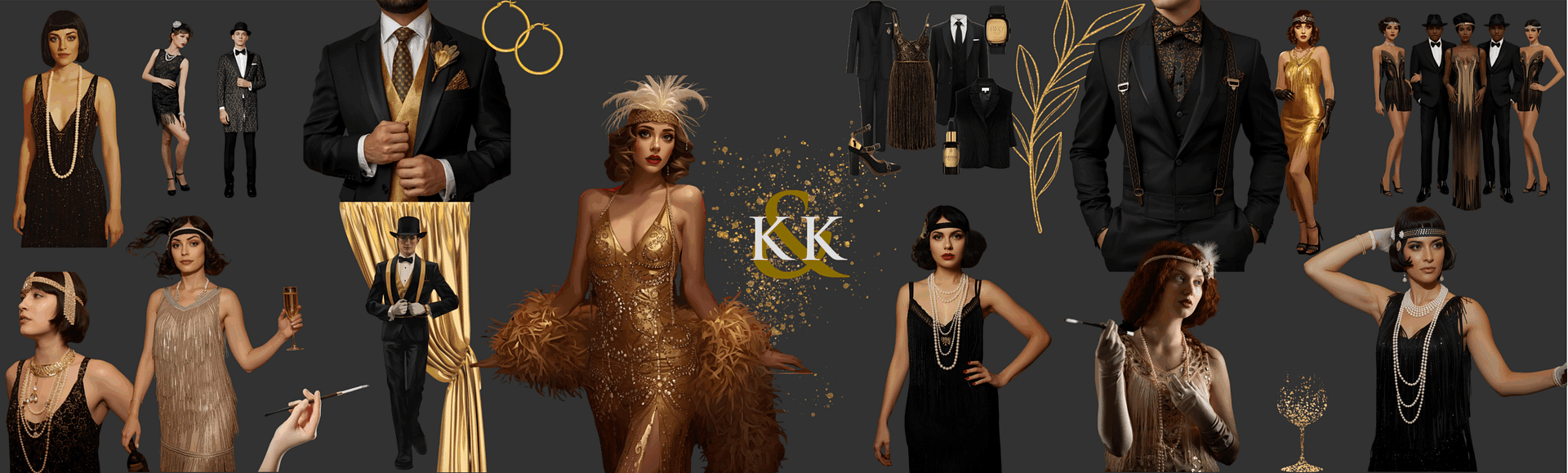Wählen Sie ein Outfit im Stil der Goldenen Zwanziger – ob mit Fransen, Perlen, Federn oder Hosenträgern, oder setzen Sie auf elegante Abendgarderobe wie Cocktailkleider, stilvolle Anzüge oder schicke Kombinationen, um perfekt zum Thema zu passen.
